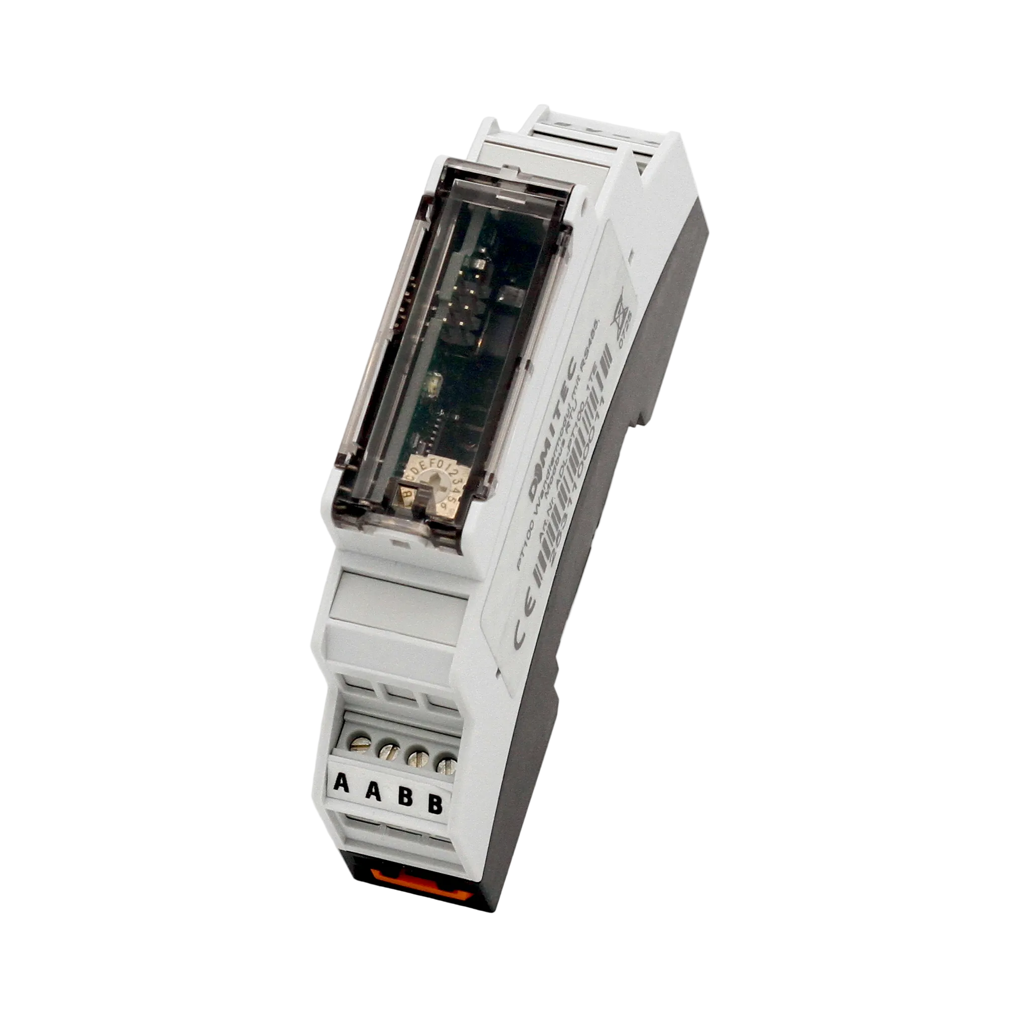 Module for temperature measurement with a PT100 sensor. The measured values can be read via Modbus RTU.